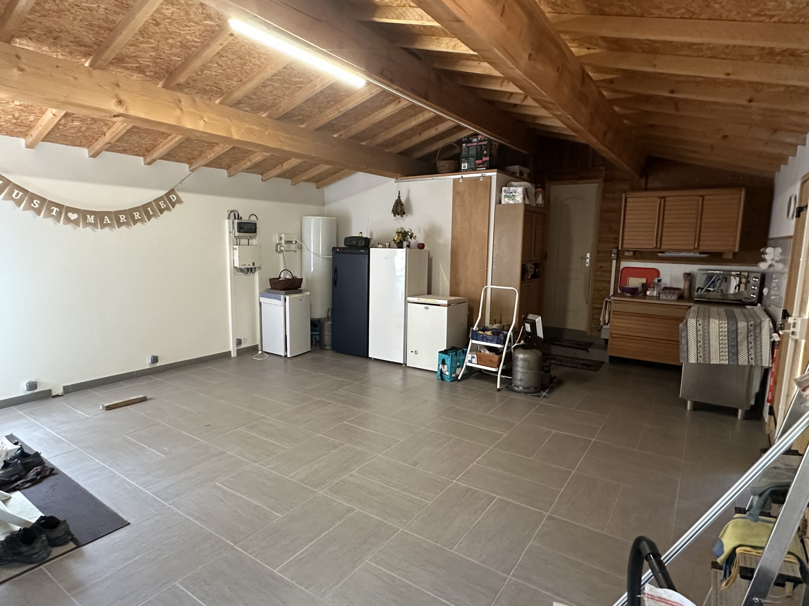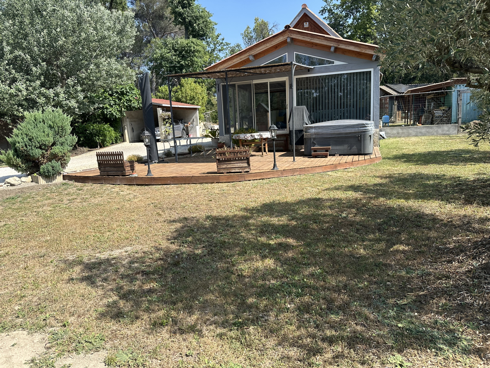 LA BARBEN BELLE VILLA OSSATURE BOIS ÉVOLUTIVE DE 149M2 DONT 104 M2 HAB , AU RDC UNE VÉRANDA DE 23M2 , UN GRAND SALON AVEC UNE CUISINE OUVERTE DE 50 M2 , UNE SALLE D EAU ,UN DRESSING ET UN WC ,UN GRAND GARAGE DE 40M2 CARRELÉ ET ISOLÉ DEUX CHAMBRES POSSIBLE SANS GROS TRAVAUX A L ÉTAGE UNE MEZZANINE DE 14 M2 HAB AVEC PLACARD A L EXTERIEUR UN ABRIS ÉQUIPÉ POUR VOITURE ÉLECTRIQUE, DEUX CONTAINERS BATEAU ÉQUIPÉE EN PHOTOVOLTAIQUE , UNE TERRASSE COUVERTE AVEC UN JACUZZI LE TOUT CLOTURÉ AVEC PORTAIL AUTOMATIQUE SUR UNE PARCELLE DE 1173M2 EN IMPASSE AU CALME