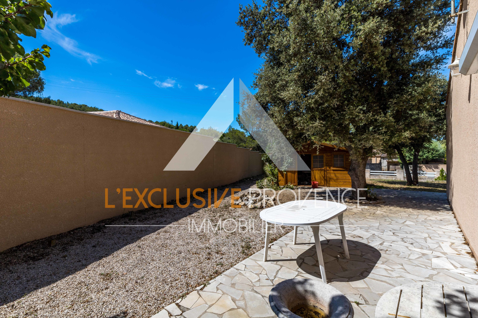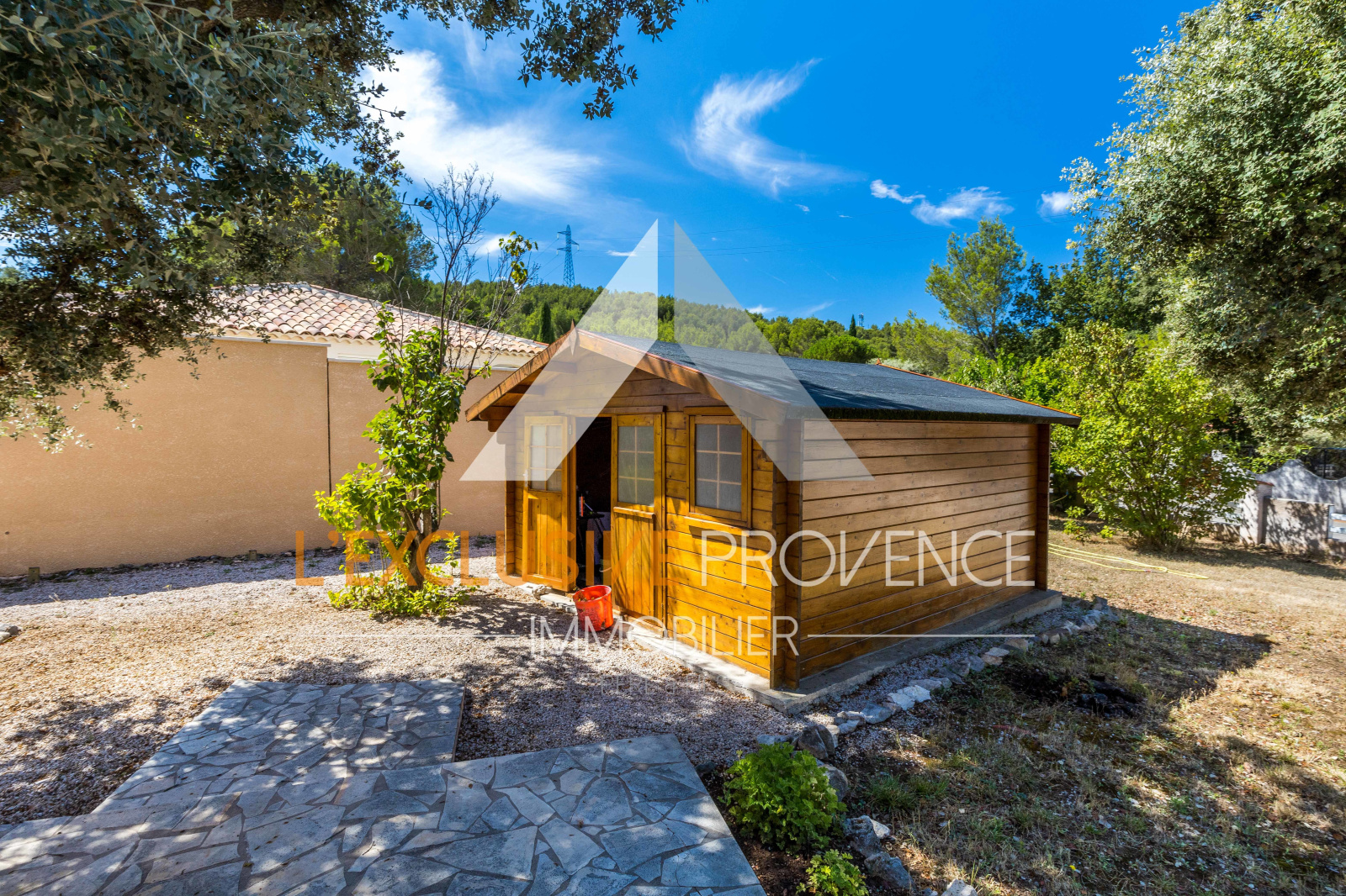 Le terrain dispose d'un abris de jardin et l'arrosage automatique alimenté par le canal de provence