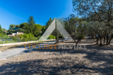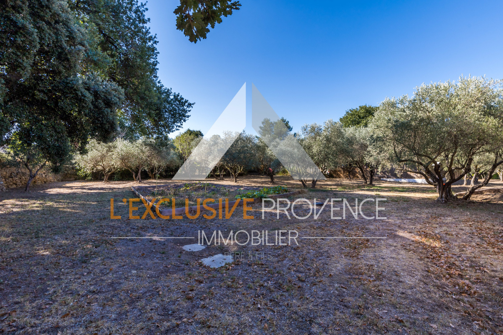 Côté jardin, un abri voiture avec atelier attenant fermé, le tout sur un terrain de 3000m2 planté d'oliviers.