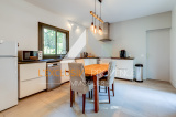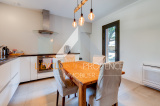 Elle se compose au rez-de-chaussée d'un hall d'entrée, un salon / salle à manger avec poêle à bois avec un accès à la grande terrasse, une grande cuisine indépendante équipée avec buanderie et cellier attenant.